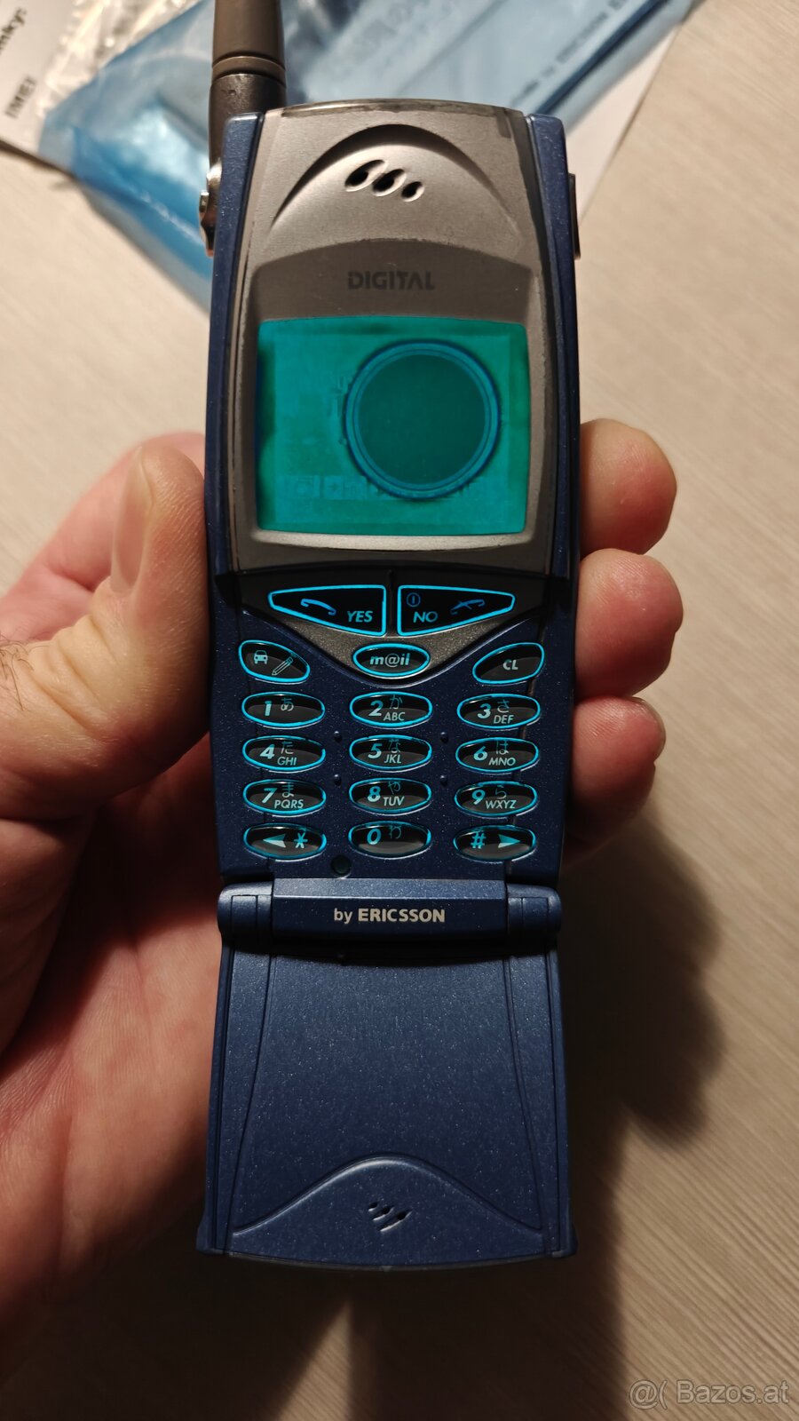Ericsson ER209i war nur für den japanischen Markt gedacht. Es gibt zwei Handys im Angebot. Wie man auf den Fotos sieht, sind die Displays kaputt. Eine Batterie ist komplett hinüber, die andere ist nur das leere Gehäuse. Die Batterie wurde rausgenommen, damit’s zu keinem Zwischenfall kommt, weil sie extrem aufgebläht war. Verkauft wird genau das, was auf den Fotos zu sehen ist: die originale Schachtel vom Handy, die Netzteile, die Ladestation und die Batterie samt Zetterl + Bedienungsanleitung auf Japanisch.